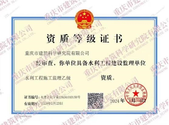 近日,經國水利部核準,重慶設計集團所屬子企業重慶市建筑科學研究院有限公司申水利部水利工程施工監理乙級資質成功獲批。