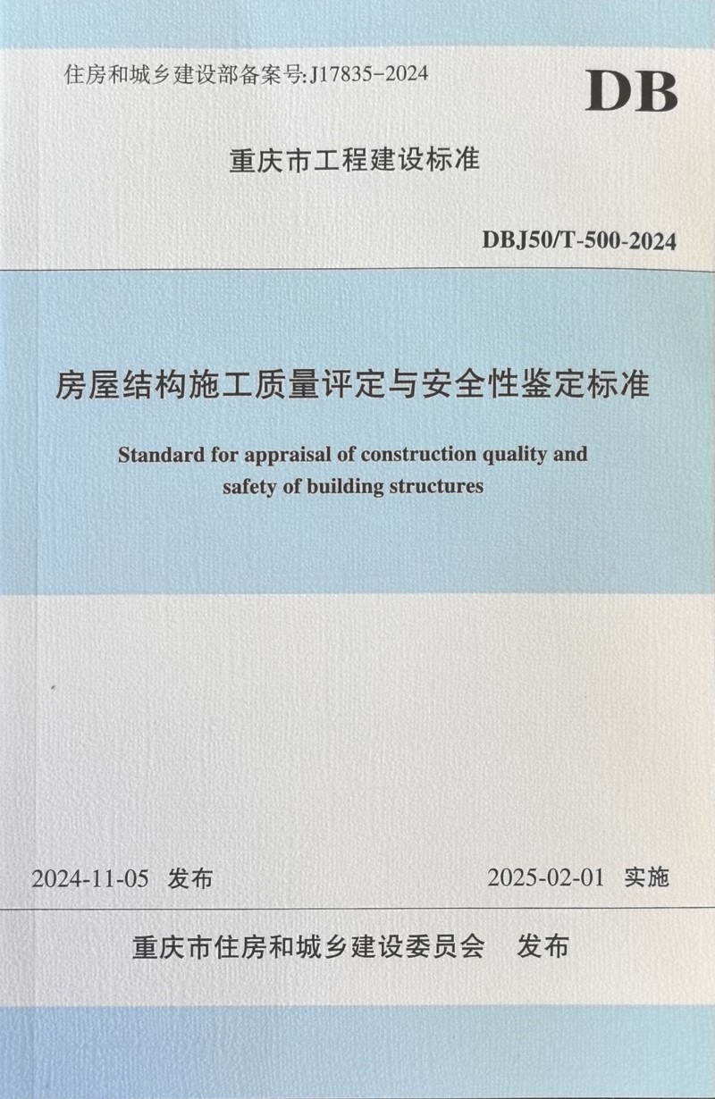 經(jīng)市住房城鄉(xiāng)建委批準,由市建科院主編的重慶地方標準《房屋結(jié)構(gòu)施工質(zhì)量評定與安全性鑒定標準》(DBJ50/T-500-2024)將于2025年2月1日起施行。