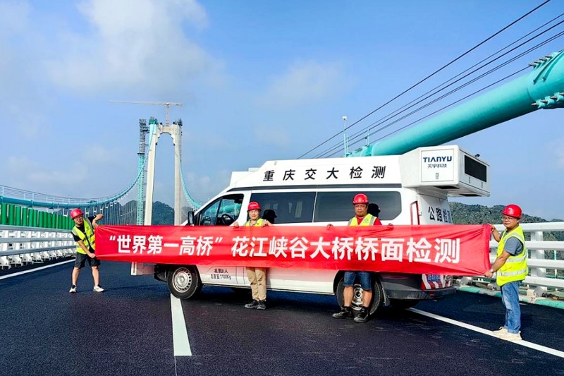 在此次挑戰(zhàn)世界之巔的檢測任務(wù)中,市建科院所屬重慶交大建設(shè)工程質(zhì)量檢測中心有限公司檢測團(tuán)隊(duì)將“檢測公正、服務(wù)及時(shí)、方法科學(xué)、誠實(shí)守信、遵規(guī)守紀(jì)”的質(zhì)量方針貫穿于項(xiàng)目全生命周期,為大橋橋面檢測任務(wù)量身定制了科學(xué)周密、前瞻精準(zhǔn)的技術(shù)方案。在項(xiàng)目實(shí)施過程中,檢測團(tuán)隊(duì)?wèi){借深厚的技術(shù)實(shí)力攻克了因橋面超高、跨度極大帶來的系列“高精尖”檢測難題。他們對每一次檢測質(zhì)量嚴(yán)格把關(guān),讓檢測數(shù)據(jù)精準(zhǔn)、及時(shí)、科學(xué)地呈現(xiàn)在檢測報(bào)告上,確保了所有檢測指標(biāo)均符合大橋設(shè)定與行業(yè)規(guī)范。